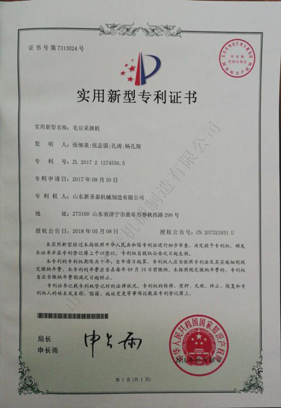 近日,从专利代理机构济宁众诚专利事务所传来喜讯,新圣泰公司申报的四项专利获得授权,并于同日收到国家知识产权局颁发的专利证书。这标志着山东新圣泰机械制造公司的产品;