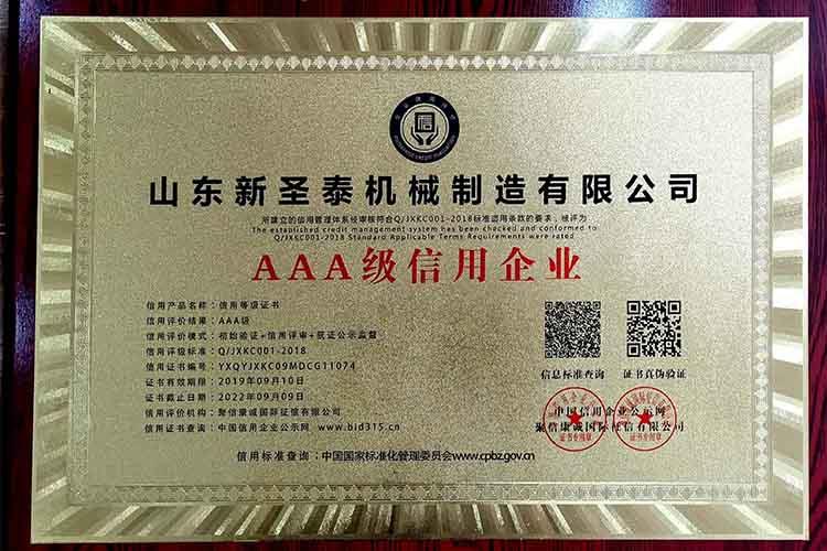 金秋时节,佳讯频传。经过中国质量认证监督管理中心、中国企业信用评估中心、聚信国际征信有限公司的综合评估,山东新圣泰机械制造有限公司荣获“中国著名品牌”和“AAA信用企业”证书。在上述单位组织的全国品牌培育调研推广活动中,新圣泰品牌入选《中国著名品牌》并将给予重点培育和推广。同获“AAA信用企业”,这是对于新圣泰的褒奖,新圣泰公司将以此为契机,加大研发力度,不断推出农牧业所需的新型农机产品,以创新的产品、过硬的产品质量、优质的售后服务为广大客户提供满意的服务,用行动践诺企业的社会责任,在创造经济效益的同时,创造更大的社会效益。