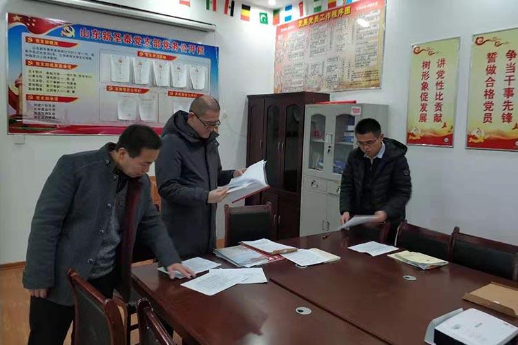 2020年1月9号下午,曲阜市委组织部领导在时庄街道党工委组织科尹文刚科长等人陪同下,对于新圣泰党建工作、主题教育开展情况进行年底考核。