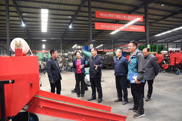 调研期间,范本荣一行实地参观了山东新圣泰机械制造有限公司的秸秆综合利用装备生产线,详细了解了企业技术研发和产品推广情况,现场观摩了小型青贮饲料打捆缠膜机作业演示。