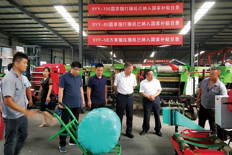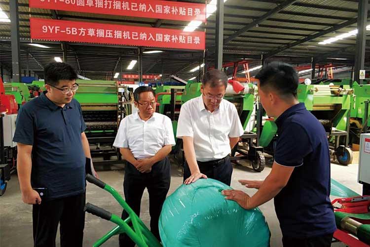 崔加清市长一行,到车间进行了实地考察,详细询问了生产情况,并观看了青储饲料打捆包膜一体机的现场操作演示。对于新圣泰不断研发秸秆综合利用新型装备给予肯定,鼓励企业做强做大秸秆综合利用农机装备产业,为了企业发展壮大继续努力加油。