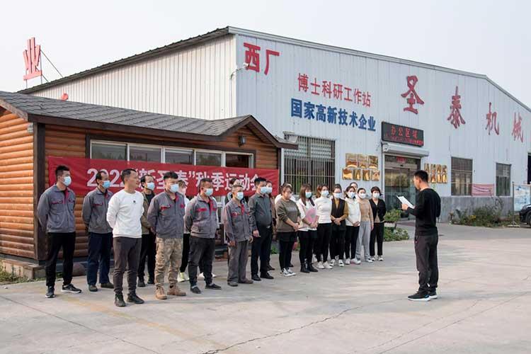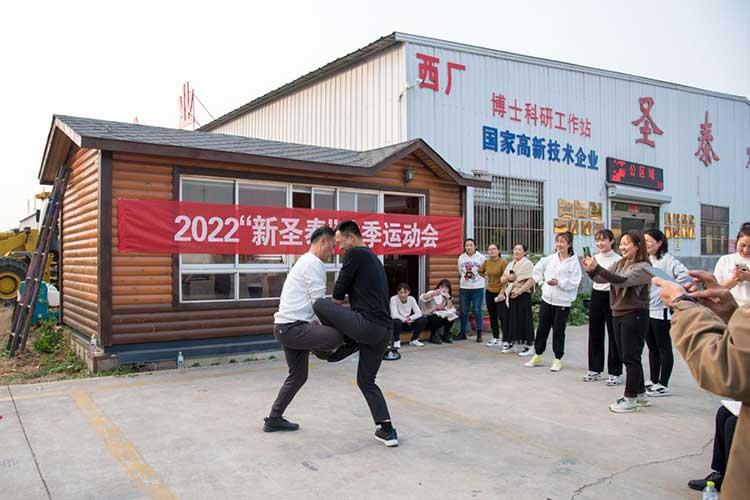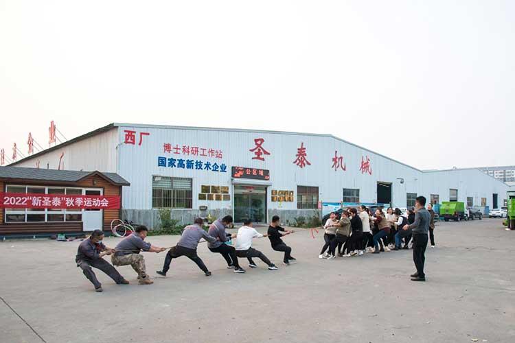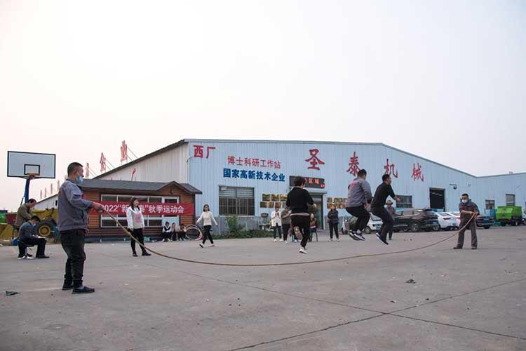 山东新圣泰机械制造有限公司秋季运动会暨首届运动会在新圣泰厂区隆重举行。本次运动会是山东新圣泰机械制造有限公司工会委员会成立之后的第一次运动会,经过精心策划,运动会共分设9个项目,竞技项目8个,百米短跑、羽毛球、扳手腕、踢毽子、定点投篮、跳绳、呼啦圈、斗鸡,集体娱乐项目跳大绳(拔河)。